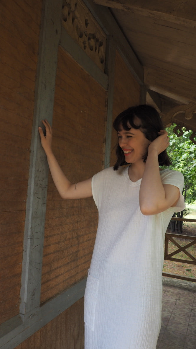 -Robe longue droite avec manches tombantes